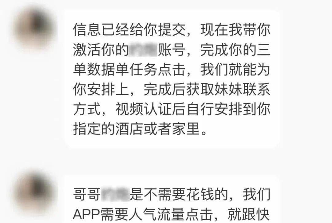 以“达到方针即可免费约炮”为名,实为“刷单”欺诈,先以小额返利取信受害者,诱使受害者加大金钱投入。