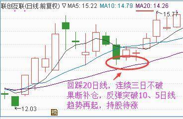 合适补仓的两种K线、K线日线个点,能够不补仓,回踩5日线不跌破会再次上涨有机遇解套或获利。