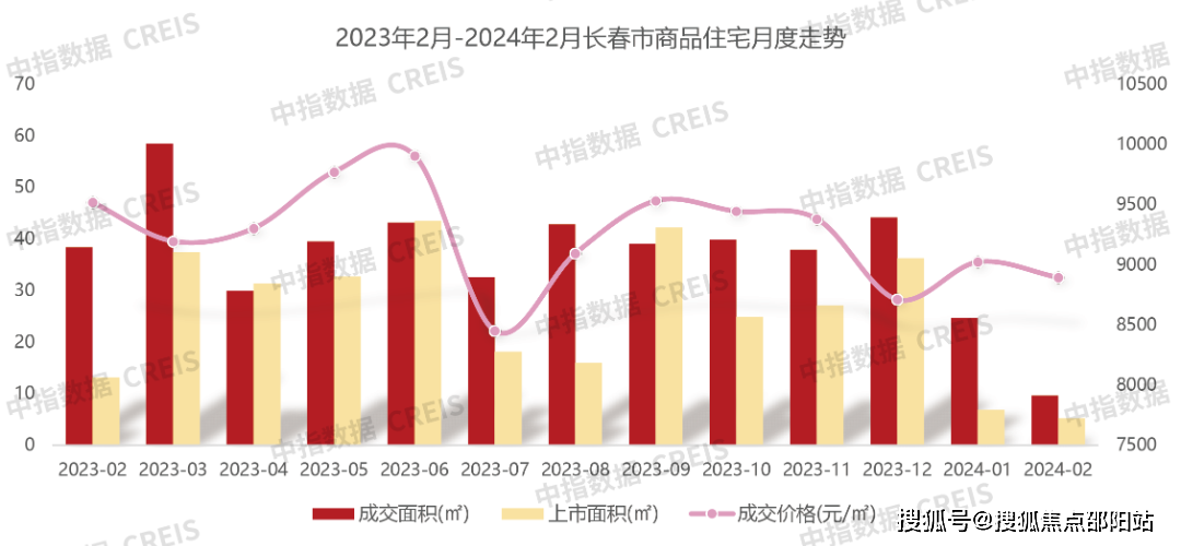 2024年1-2月长春住宅市场整体供应12.1万㎡,成交34.3万㎡,年初整体表现为供小于求。价格这一块,1-2月份销售均价约为8987元/㎡。