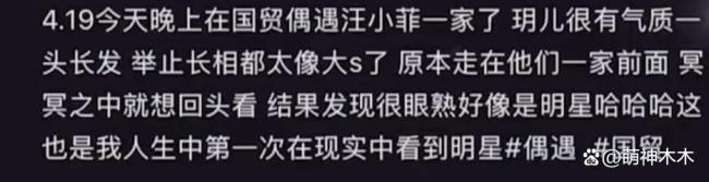 4月20日,不少网友在交际平台上共享了在北京国贸偶遇汪小菲、马筱梅、张兰以及汪小菲的一对子女逛街的画面。据了解,汪小菲现已接回了女儿小玥儿和儿子汪希箖,一家人总算聚会,看起来十分美好