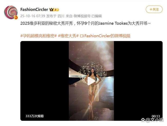 2025年维多利亚的隐秘大秀以打破性事情引发全球注目:美国超模Jasmine Tookes(昵称“小茉莉”)在怀孕9个月(接近预产期)的状况下,为本次大秀担任开场模特。Jasmine Tookes(35岁),前维密天使,曾佩带2016年Fa...